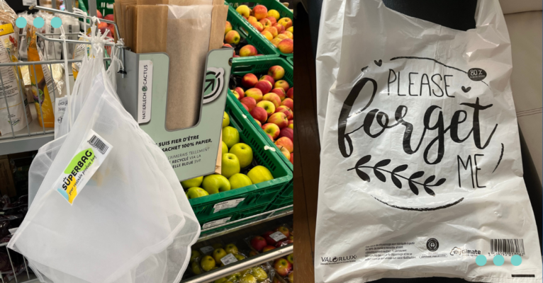Так, в Люксембурзі відсутні пластикові пакети у відділі з фруктами та овочами, або у хлібобулочному, а на заміну можна взяти багаторазові мішечки-сіточки або паперові. Складати товари пропонують в міцні багаторазові сумки, які можна також придбати в магазинах. Цікаво, що люксембуржці часто ходять за покупками з сумками на колесах на кшталт наших “кравчучок”. Щодо пакетів, то якщо вони й трапляються, то частково з переробленого пластику та написами “Забудь про мене!” Ніби просто? Але кожного разу нагадує, що 1-разовий пакетик це не ок. Також тут практикують покупку ланчів в контейнери, які можна здати на переробку (але — тільки в той самий “синій пакет” для домогосподарств).