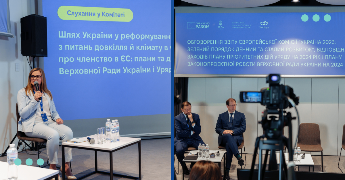13 травня 2024 року в Комітеті ВРУ з питань екологічної політики та природокористування відбулися слухання на тему “Шлях України у реформуванні законодавства з питань довкілля й клімату в частині переговорів про членство в ЄС: плани та діяльність Верховної Ради України і Уряду в 2024 році”, за участю представників органів державної влади, Комісара Європейської Комісії з питань навколишнього середовища, океанів і рибальства та громадськості. Ініціаторами слухання виступили громадські організації «SaveDnipro» та «Екологія-Право-Людина».